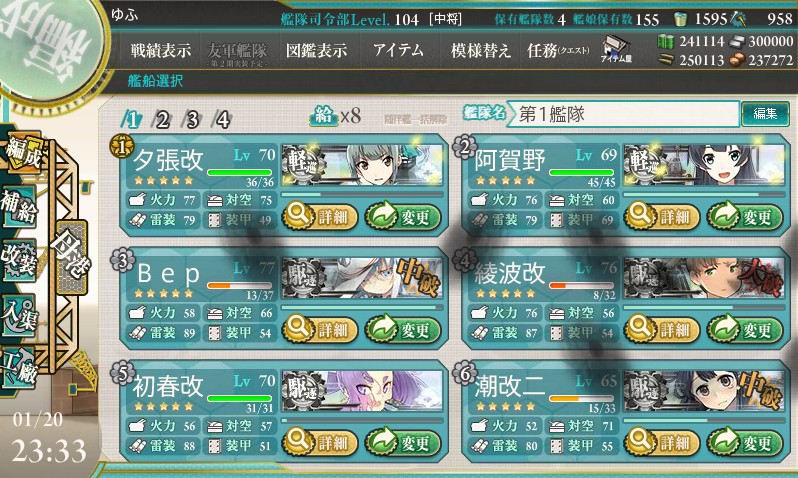 軽巡のレベル上げと初春・潮のレベル上げついでに3-5を