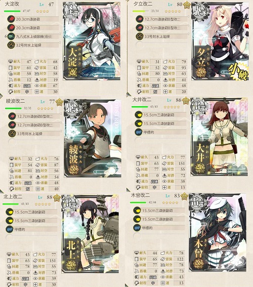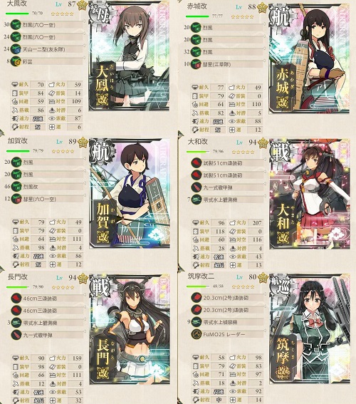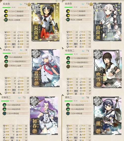 長良と由良は画像では零偵乗っけてますがが攻略時は零観を積んでます、、、